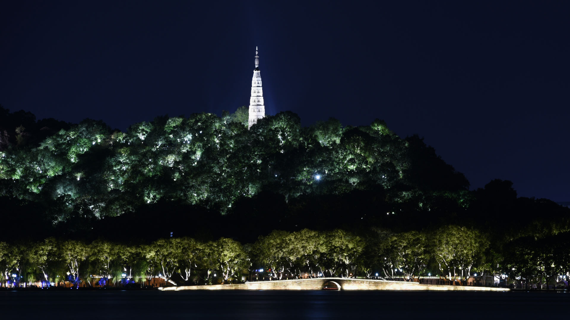 西湖斷橋和保俶塔夜景(8月29日攝)。新華社記者 鞠煥宗 攝