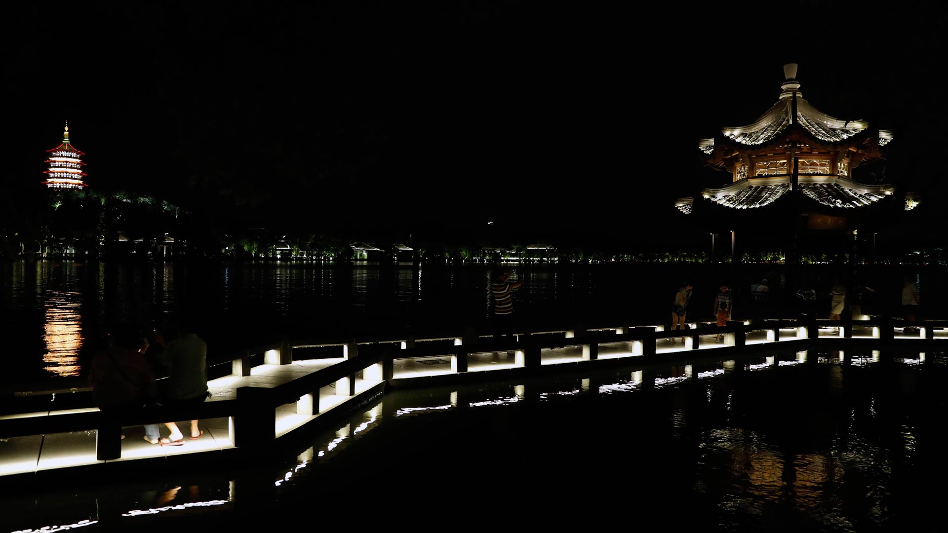 這是在杭州西湖拍攝的夜景(8月30日攝)。 新華社記者陳建力攝