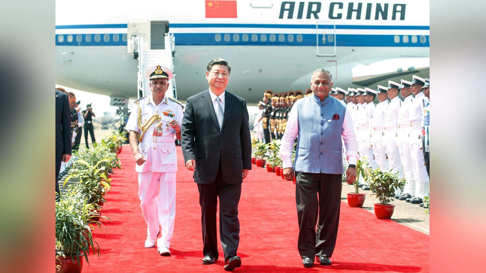 10月15日,國(guó)家主席習(xí)近平抵達(dá)印度果阿,應(yīng)印度總理莫迪邀請(qǐng),出席金磚國(guó)家領(lǐng)導(dǎo)人第八次會(huì)晤。新華社記者蘭紅光攝