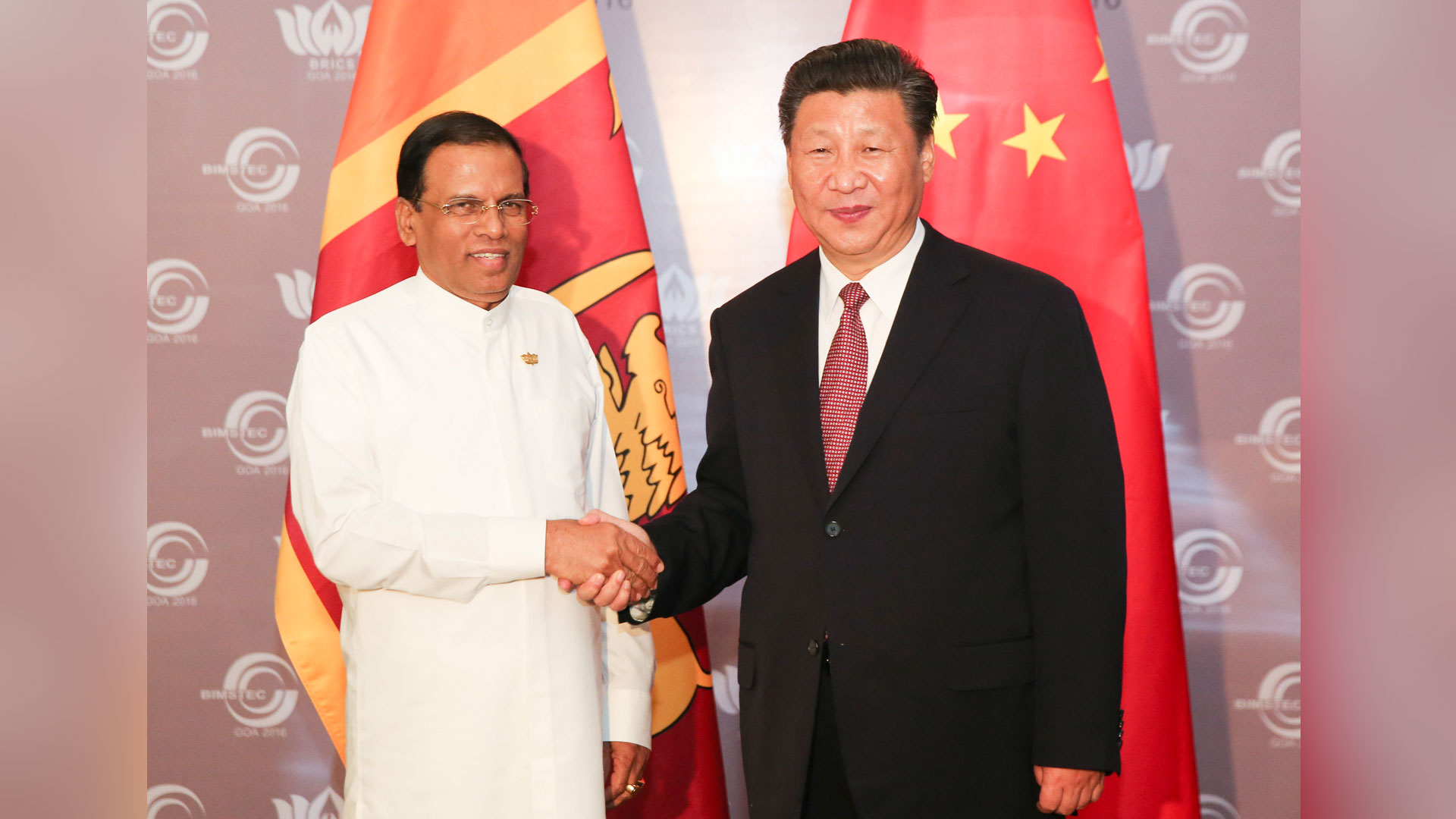 10月16日,國(guó)家主席習(xí)近平在印度果阿會(huì)見(jiàn)斯里蘭卡總統(tǒng)西里塞納。 新華社記者 王曄 攝