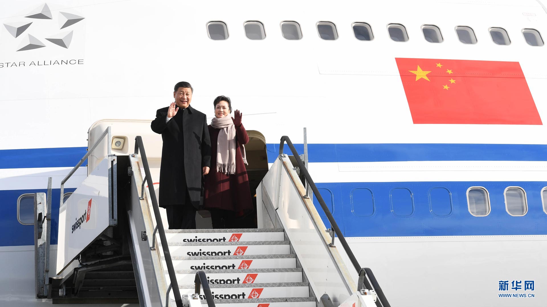 1月15日,國家主席習(xí)近平乘專機(jī)抵達(dá)蘇黎世,開始對(duì)瑞士聯(lián)邦進(jìn)行國事訪問。 這是習(xí)近平和夫人彭麗媛步出艙門。 新華社記者丁林?jǐn)z2017-01-16