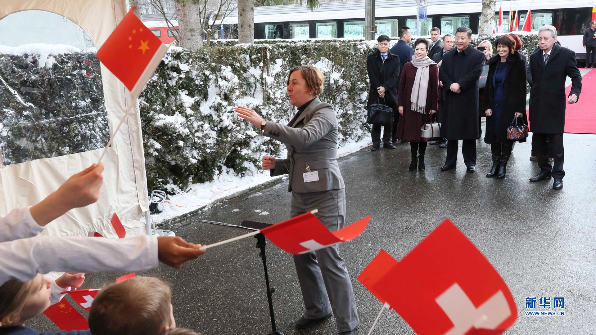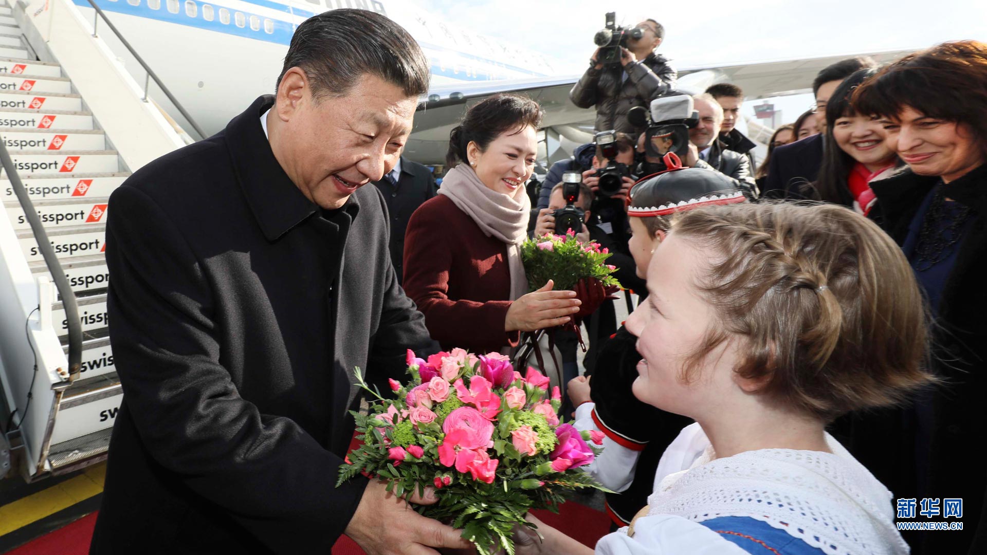 1月15日,國家主席習(xí)近平乘專機(jī)抵達(dá)蘇黎世,開始對(duì)瑞士聯(lián)邦進(jìn)行國事訪問。這是當(dāng)?shù)貎和蛄?xí)近平和夫人彭麗媛獻(xiàn)上鮮花。新華社記者蘭紅光攝2017-01-16