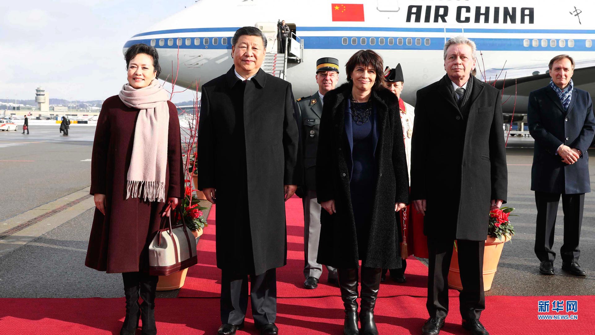 1月15日,國家主席習(xí)近平乘專機(jī)抵達(dá)蘇黎世,開始對(duì)瑞士聯(lián)邦進(jìn)行國事訪問。這是瑞士聯(lián)邦主席洛伊特哈德在機(jī)場(chǎng)為習(xí)近平和夫人彭麗媛舉行隆重歡迎儀式。新華社記者蘭紅光攝2017-01-16