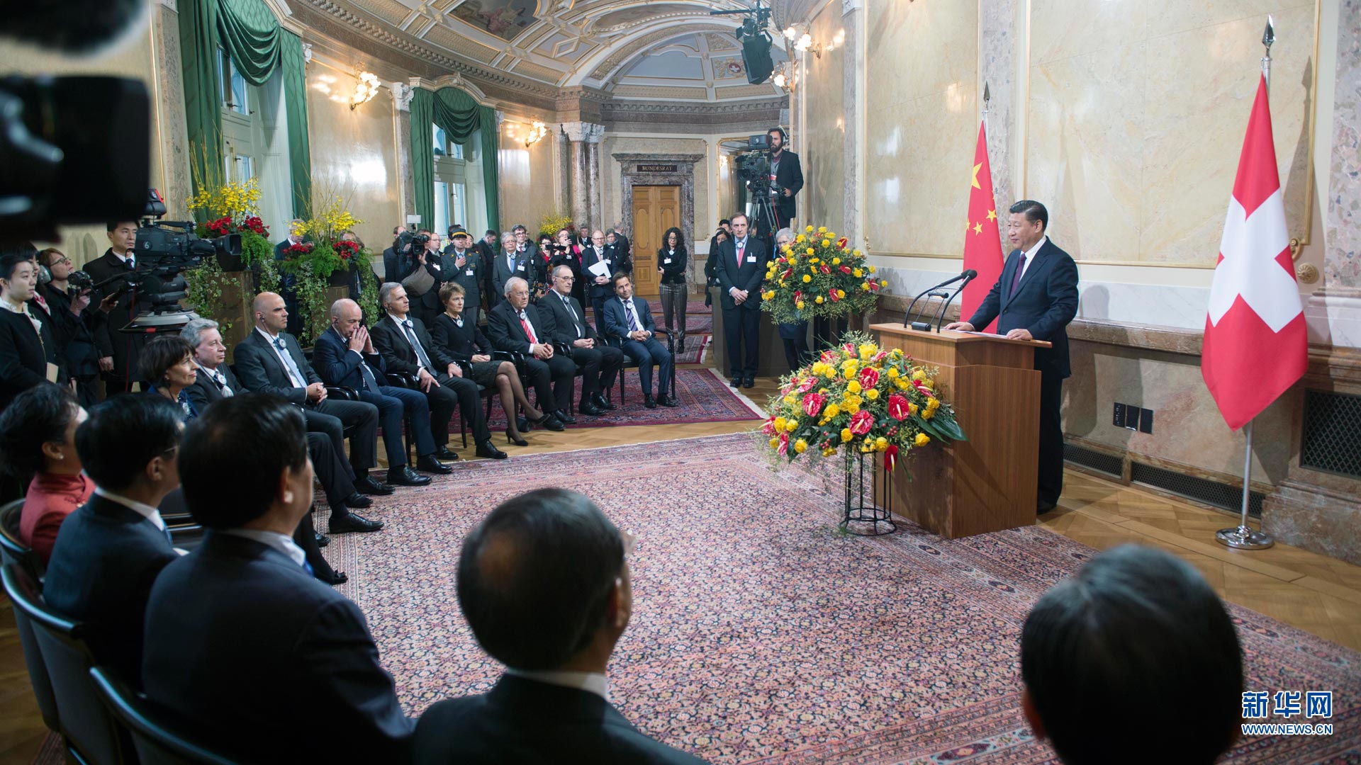 1月16日,國家主席習(xí)近平在伯爾尼同瑞士聯(lián)邦主席洛伊特哈德共同會(huì)見瑞士經(jīng)濟(jì)界代表。新華社記者 李學(xué)仁 攝2017-01-17