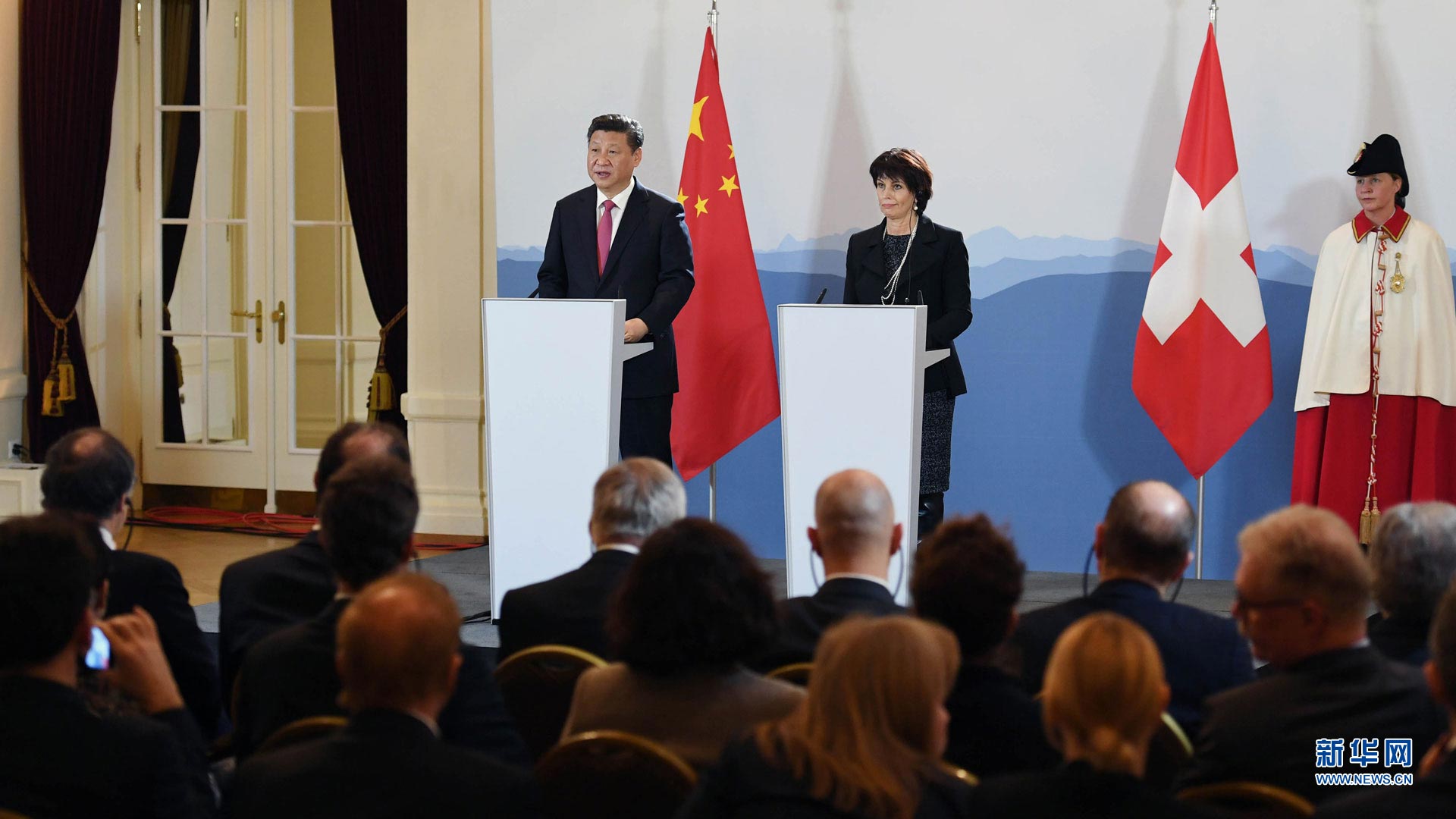 1月16日,國家主席習(xí)近平在伯爾尼同瑞士聯(lián)邦主席洛伊特哈德舉行會(huì)談。這是會(huì)談后,兩國元首共同會(huì)見記者。新華社記者 饒愛民 攝2017-01-17