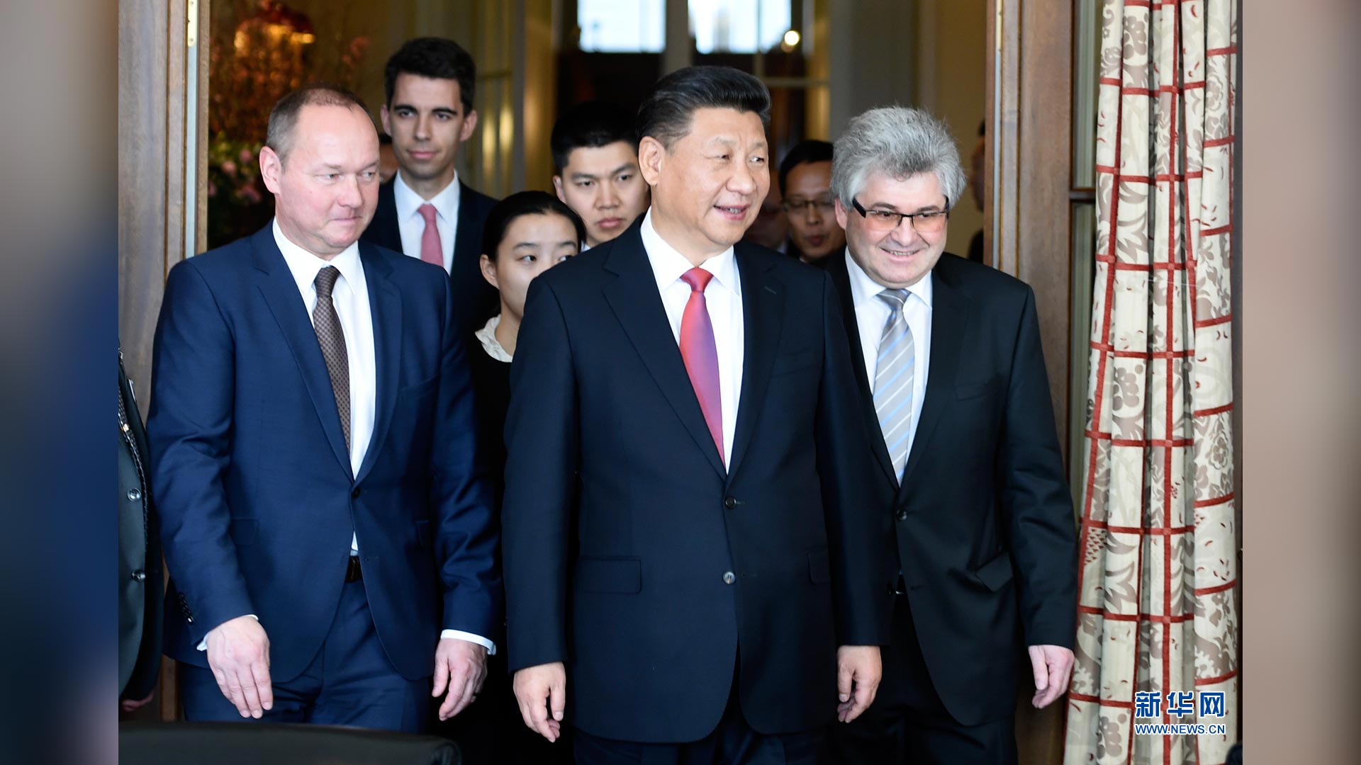1月16日,國家主席習(xí)近平在伯爾尼會(huì)見瑞士聯(lián)邦國民院議長施塔爾和聯(lián)邦院議長比紹夫貝爾格。 新華社記者 謝環(huán)馳 攝2017-01-17