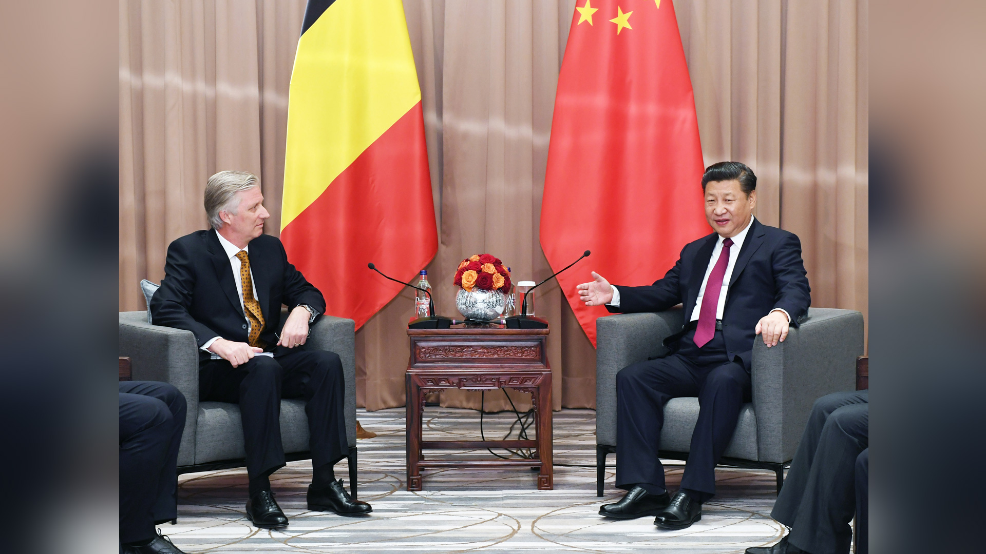 1月17日,國家主席習(xí)近平在瑞士達(dá)沃斯會(huì)見比利時(shí)國王菲利普。新華社記者 饒愛民 攝2017-01-18