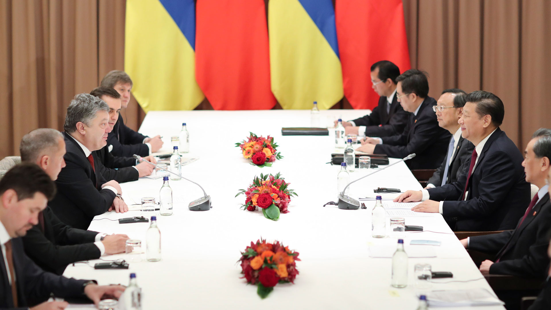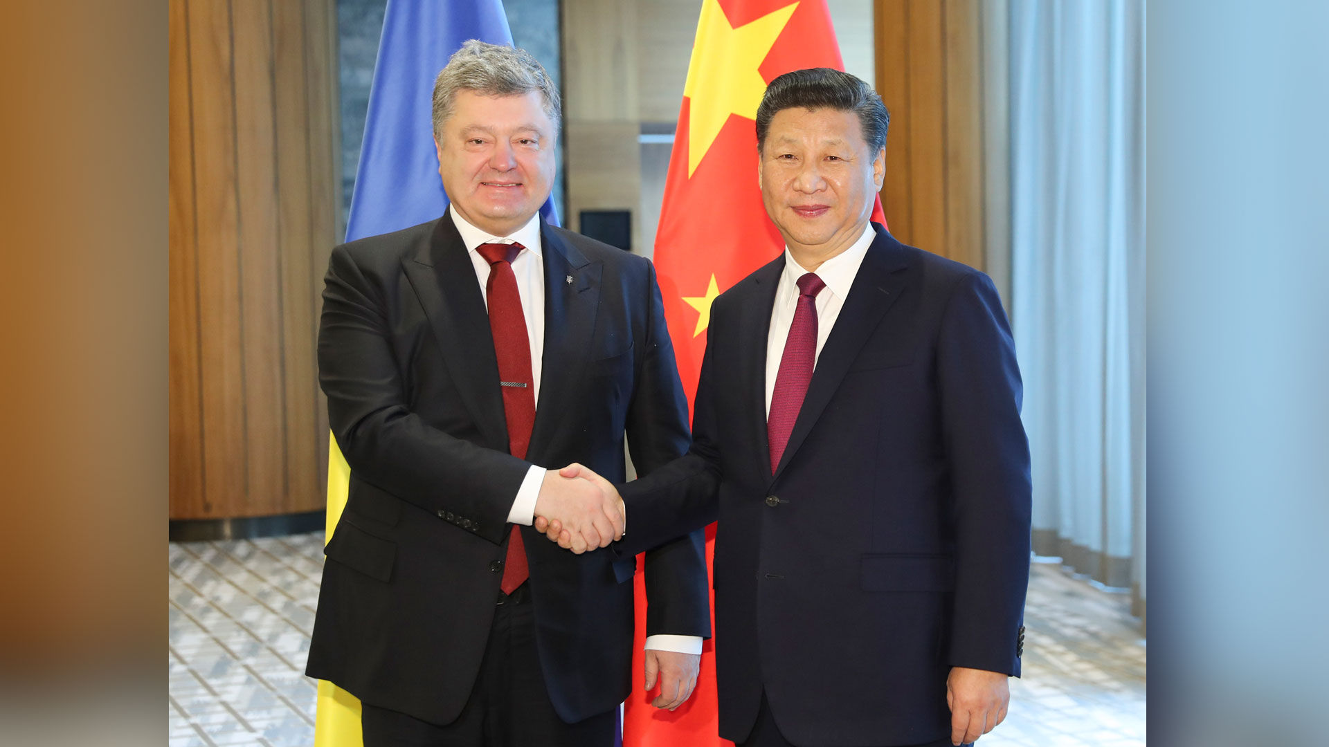 1月17日,國家主席習(xí)近平在瑞士達(dá)沃斯會(huì)見烏克蘭總統(tǒng)波羅申科。新華社記者 丁林 攝2017-01-18