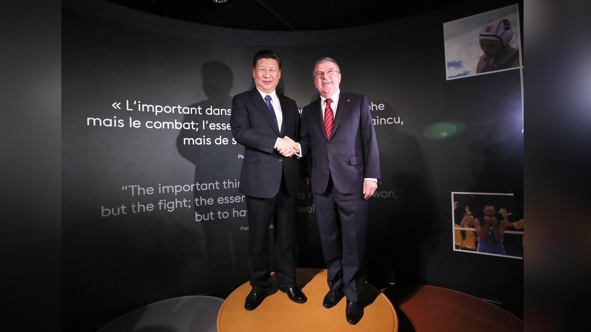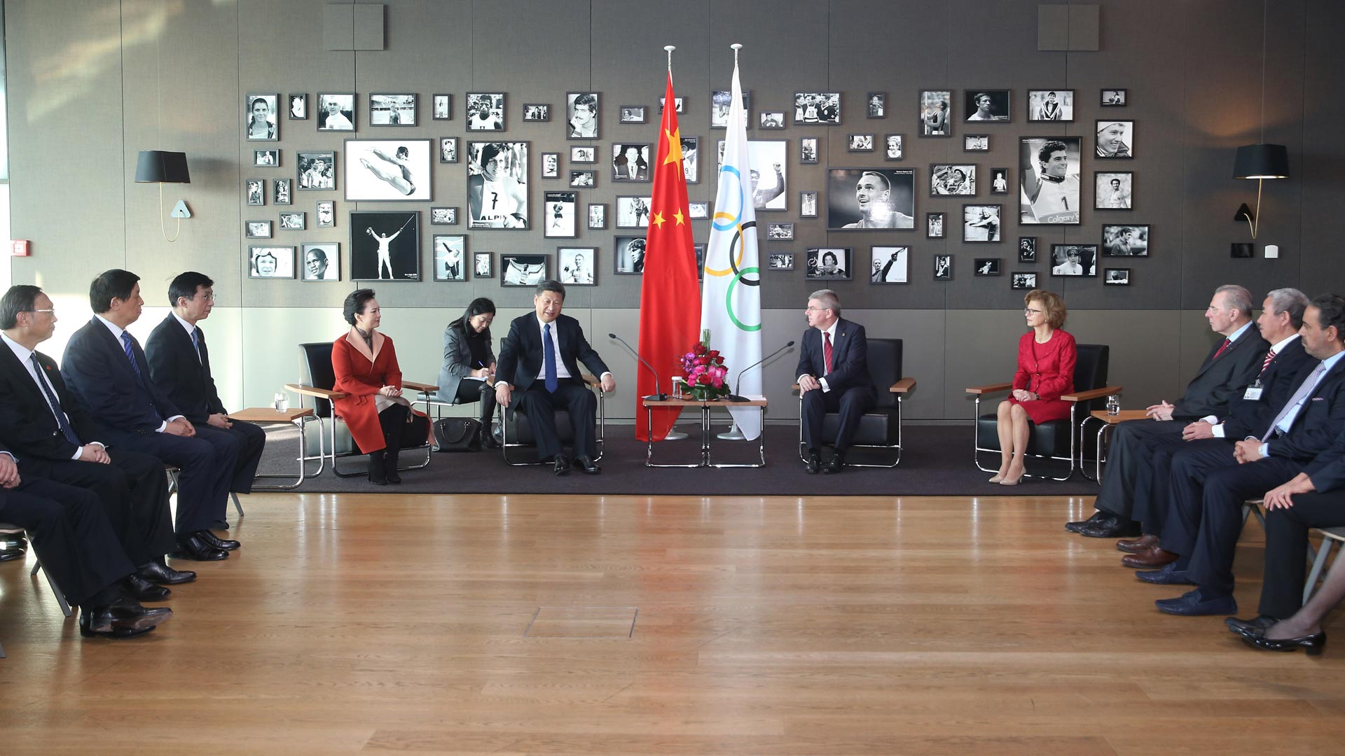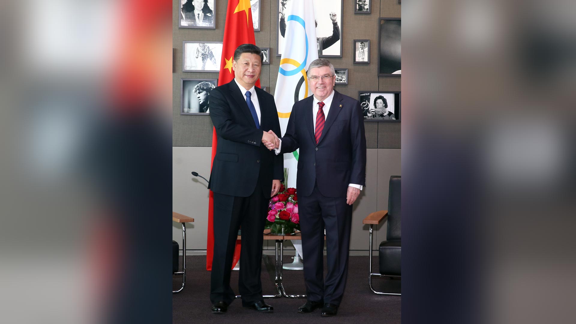 1月18日,國家主席習(xí)近平在瑞士洛桑國際奧林匹克博物館會(huì)見國際奧林匹克委員會(huì)主席巴赫。 新華社記者 姚大偉 攝2017-01-19