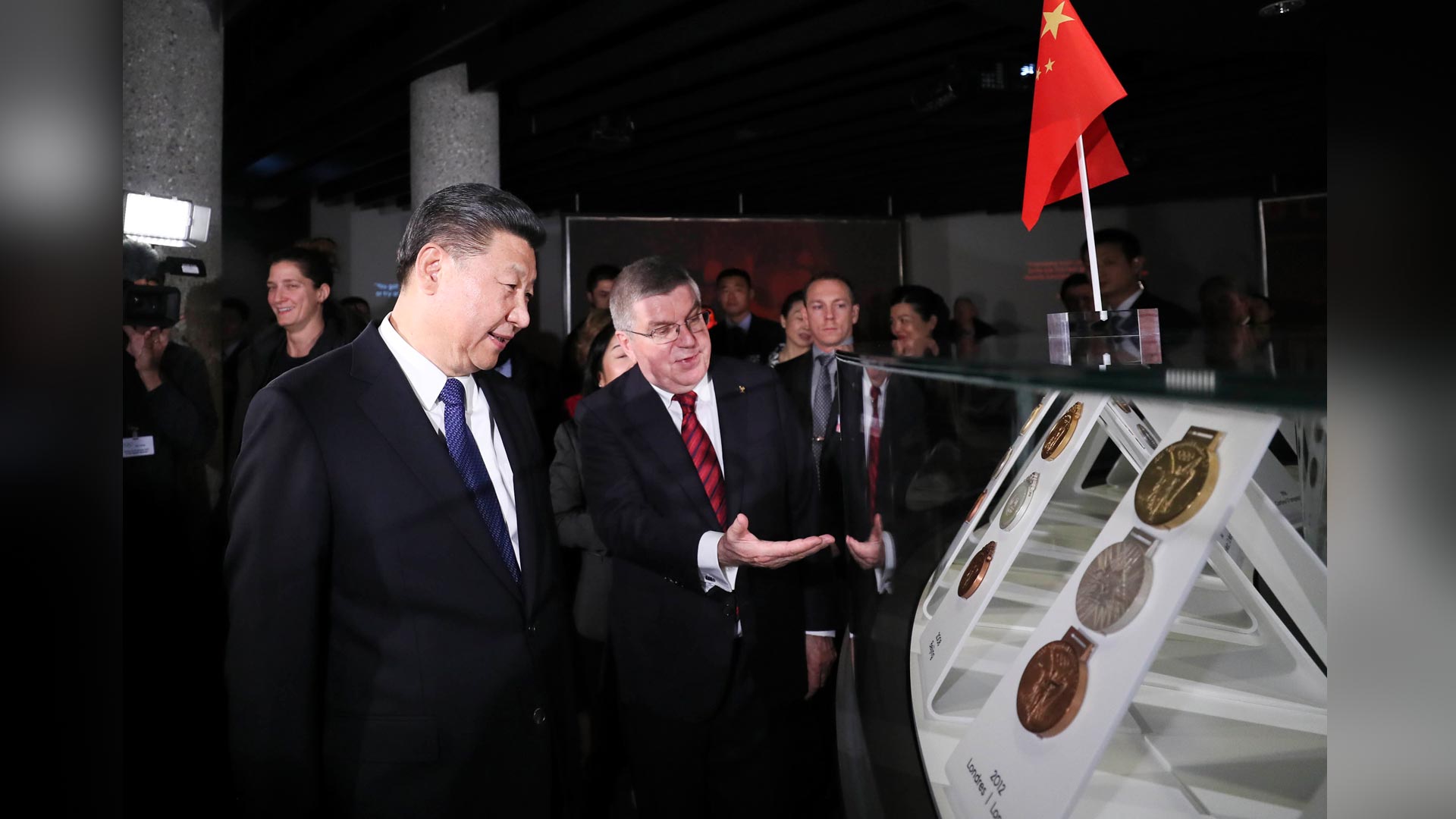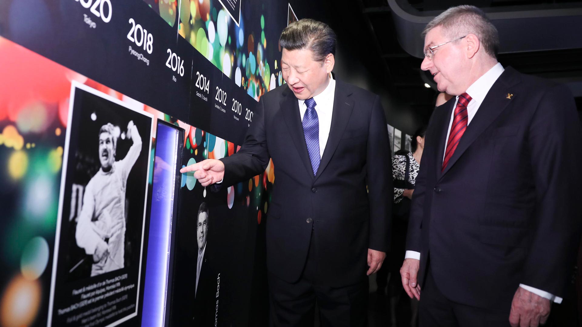 1月18日,國家主席習(xí)近平在瑞士洛桑國際奧林匹克博物館會(huì)見國際奧林匹克委員會(huì)主席巴赫。這是會(huì)見后,習(xí)近平在巴赫陪同下參觀國際奧林匹克博物館。新華社記者 姚大偉 攝2017-01-19