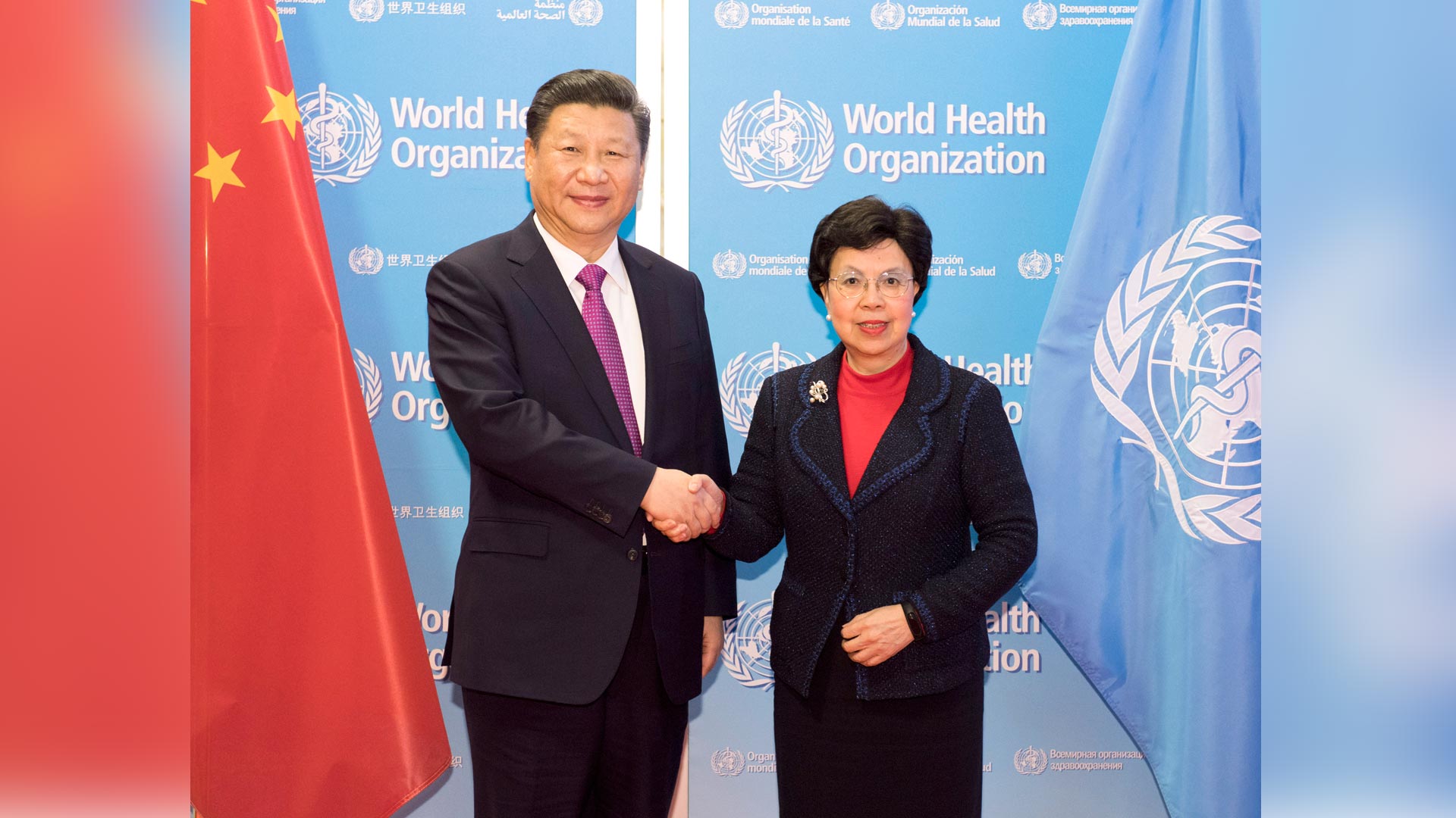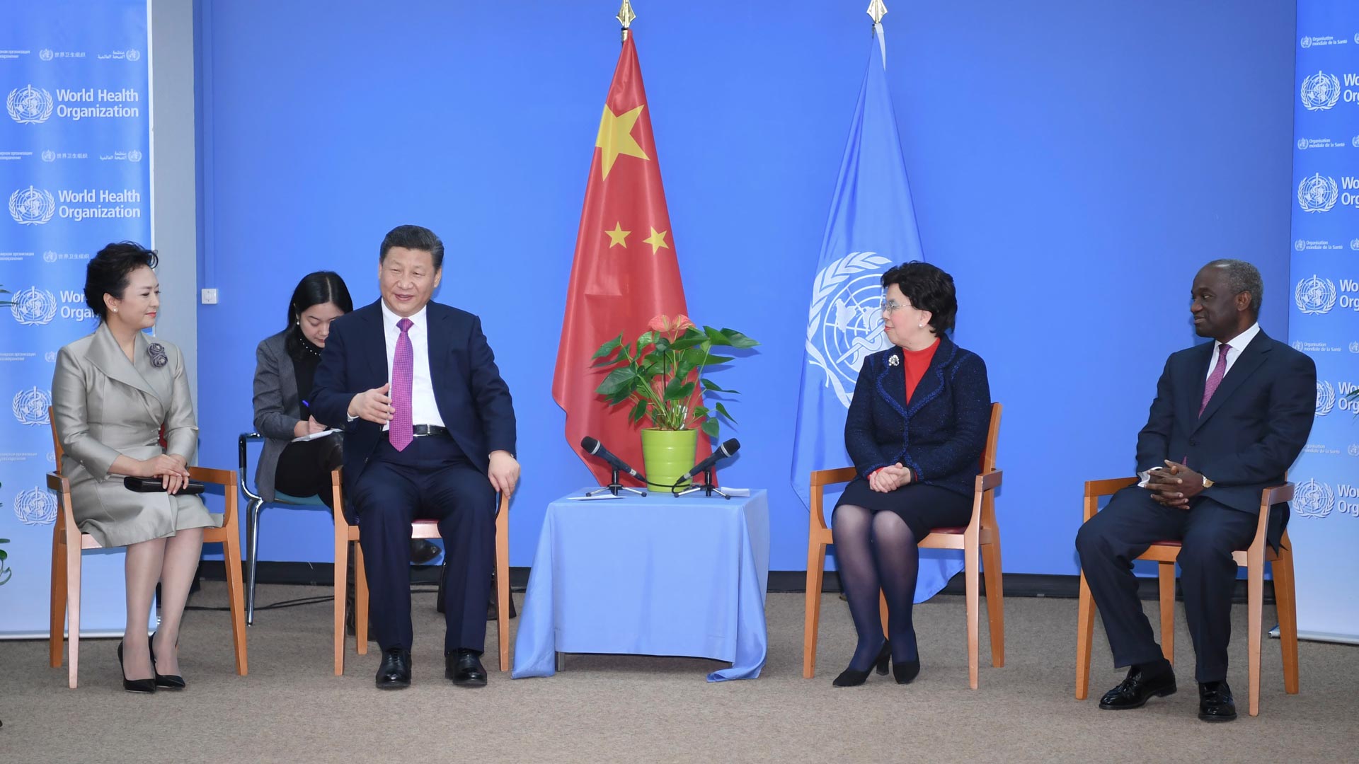 1月18日,國家主席習(xí)近平在瑞士日內(nèi)瓦訪問世界衛(wèi)生組織并會(huì)見陳馮富珍總干事。 新華社記者 吳曉凌 攝2017-01-19