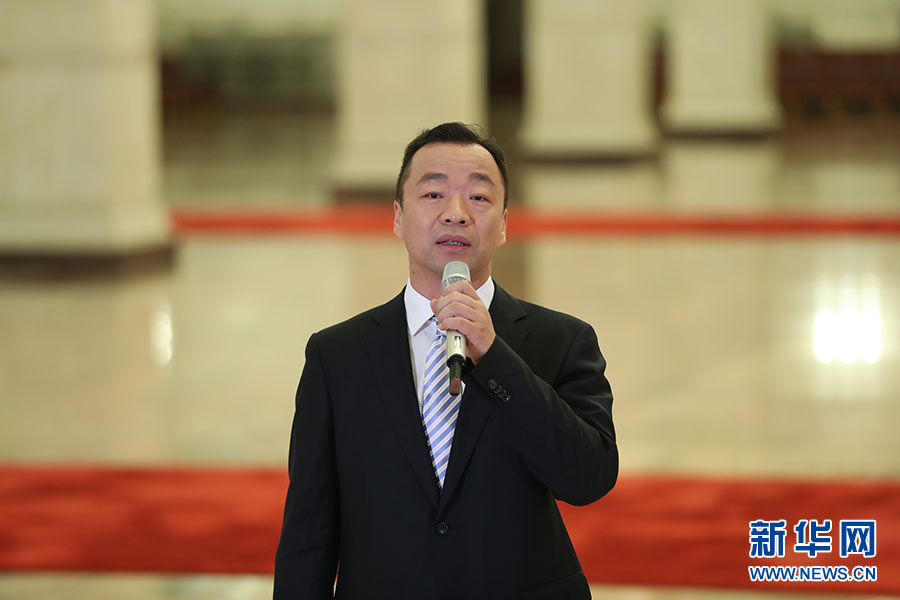 ? 10月19日,“黨代表通道”第二場采訪活動(dòng)在人民大會(huì)堂舉行。圖為現(xiàn)場主持人。新華網(wǎng) 翟子赫 攝