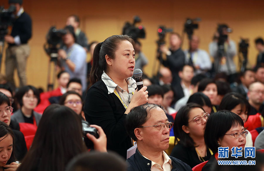 ??? 10月20日,十九大新聞中心舉行記者會(huì),邀請(qǐng)中宣部、中央文明辦、文化部、新聞出版廣電總局相關(guān)負(fù)責(zé)人介紹加強(qiáng)思想道德和文化建設(shè)情況,并回答記者提問(wèn)。圖為中央人民廣播電臺(tái)記者提問(wèn)。新華網(wǎng) 郝廣鵬 攝
