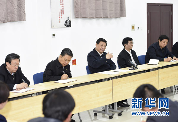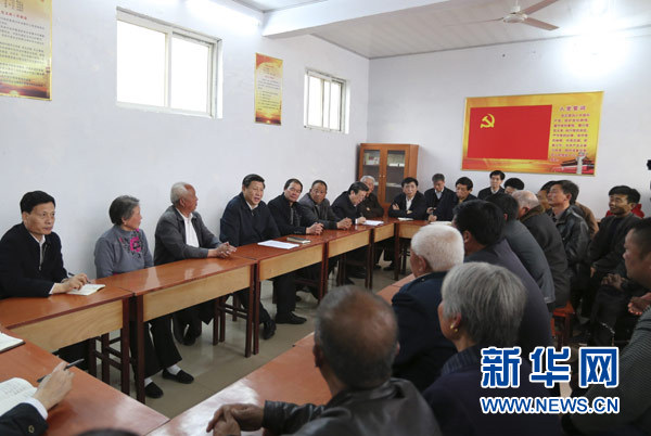 ??? 3月17日,習(xí)近平在東壩頭鄉(xiāng)張莊村村委會(huì)與干部群眾座談,聽取意見和建議。新華社記者丁林?jǐn)z