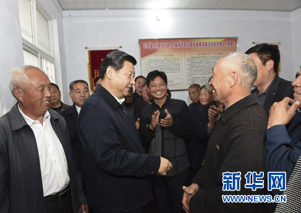 ????蘭考縣東壩頭鄉(xiāng)張莊村,是焦裕祿當(dāng)年找到防治風(fēng)沙良策并首先取得成功的地方。下午4點(diǎn)10分許,習(xí)近平來(lái)到這里考察。他牽著85歲的張景枝老人的手來(lái)到她家,看廚房,察臥室,同一家人促膝交談,問家里一年產(chǎn)多少糧食?種的蔬菜夠不夠吃?農(nóng)業(yè)補(bǔ)貼和低保、醫(yī)保等政策是否享受到?對(duì)新農(nóng)村建設(shè)有哪些要求?習(xí)近平叮囑當(dāng)?shù)馗刹恳袑?shí)關(guān)心農(nóng)村每個(gè)家庭特別是貧困家庭,通過因地制宜發(fā)展產(chǎn)業(yè)促進(jìn)農(nóng)民增收致富。