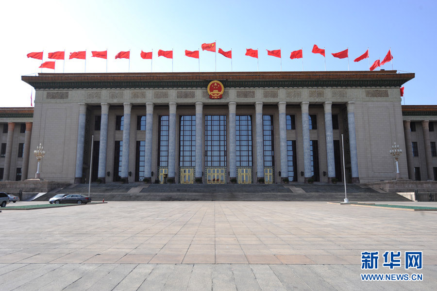 ????3月12日,十二屆全國(guó)人大三次會(huì)議在北京人民大會(huì)堂舉行第三次全體會(huì)議。圖為人民大會(huì)堂外景。 新華網(wǎng)/中國(guó)政府網(wǎng) 翟子赫 攝