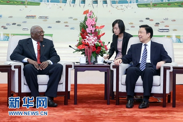 6月27日,中共中央政治局委員、國(guó)家副主席李源潮在北京會(huì)見來華通報(bào)古共七大情況的古共中央第一書記勞爾·卡斯特羅特使巴爾德斯。 新華社記者 姚大偉 攝