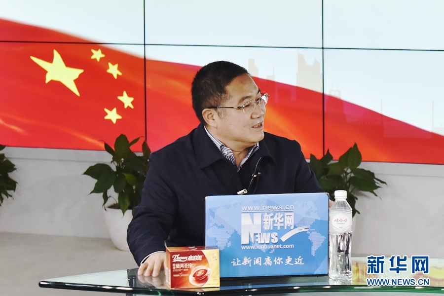 2016年3月12日,全國(guó)人大代表、正邦集團(tuán)董事局主席、總裁林印孫做客新華網(wǎng)兩會(huì)訪(fǎng)談直播間。圖為林印孫在回答主持人提問(wèn)。新華網(wǎng) 郭小天 攝