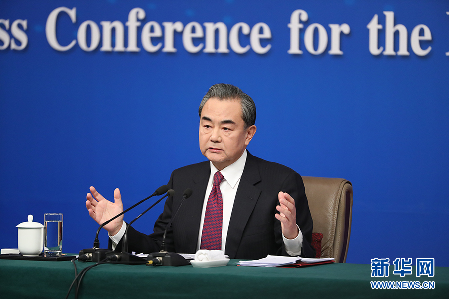 十二屆全國人大五次會議新聞中心于3月8日(星期三)10時(shí)在梅地亞中心多功能廳舉行記者會,邀請外交部部長王毅就“中國的外交政策和對外關(guān)系”的相關(guān)問題回答中外記者的提問。圖為外交部部長王毅回答現(xiàn)場記者提問。新華網(wǎng)/中國政府網(wǎng)?翟子赫 攝?