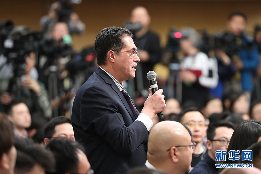 十二屆全國人大五次會議新聞中心于3月8日(星期三)10時在梅地亞中心多功能廳舉行記者會,邀請外交部部長王毅就“中國的外交政策和對外關(guān)系”的相關(guān)問題回答中外記者的提問。圖為半島電視臺記者提問。新華網(wǎng)/中國政府網(wǎng) 翟子赫 攝