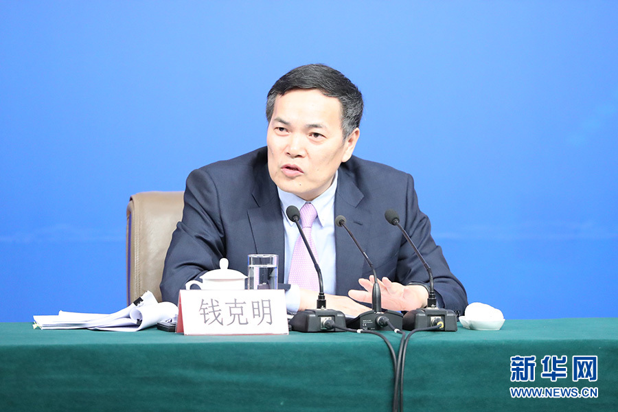 3月11日,十二屆全國人大五次會議新聞中心舉行記者會,主題是“改革開放調(diào)結(jié)構(gòu) 創(chuàng)新驅(qū)動(dòng)促發(fā)展”,商務(wù)部部長鐘山、副部長王受文、副部長錢克明出席并回答中外記者的提問。圖為商務(wù)部副部長錢克明回答記者提問。 新華網(wǎng)/中國政府網(wǎng) 傅義洲 攝