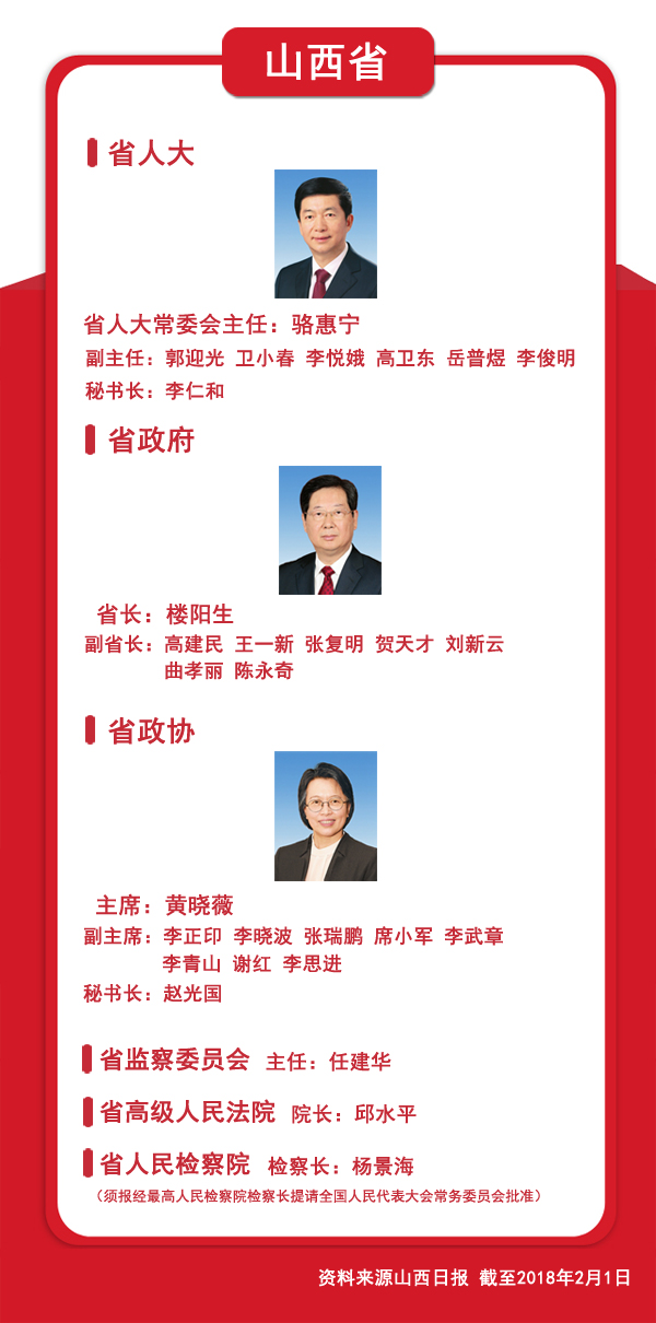 圖文速覽:31省區(qū)市新一屆人大政府政協(xié)領(lǐng)導(dǎo)班子