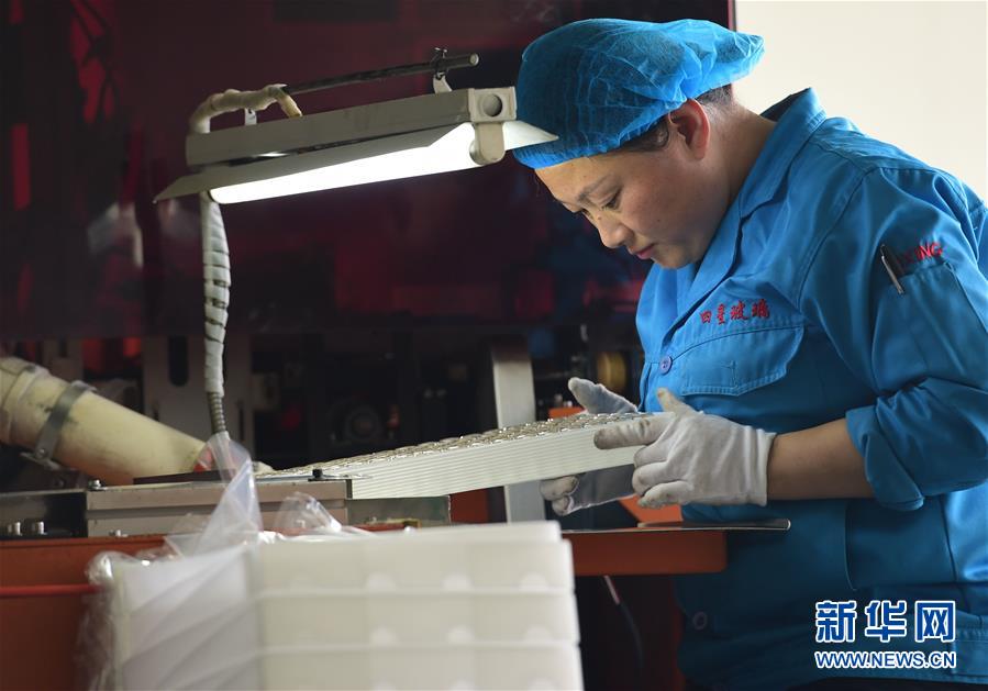 2月16日,工人在河北省滄州市滄縣四星玻璃股份有限公司生產(chǎn)車間內(nèi)檢測產(chǎn)品。 新華社發(fā)(傅新春 攝)