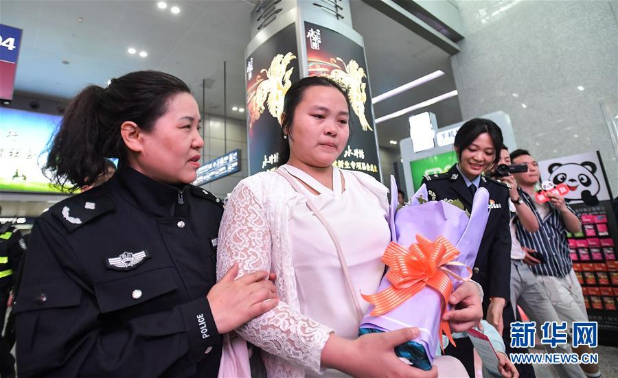 4月3日,在成都雙流國際機場,康英(左二)在民警的陪伴下準備見父母。今年50歲的王明清是成都的一名網(wǎng)約車司機,在過去的24年里,他一直苦苦尋找失蹤的女兒王啟鳳。