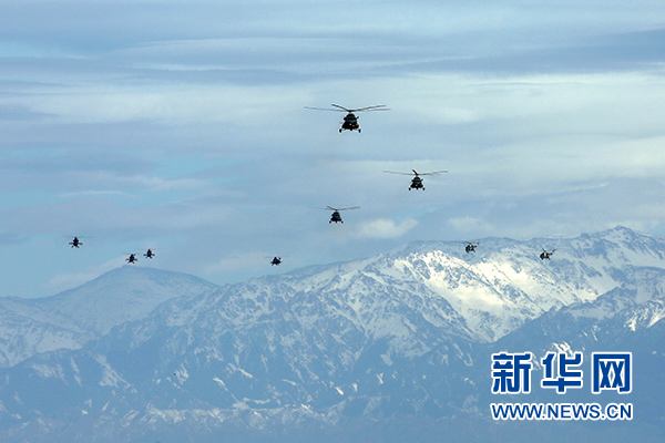 2018年5月25日,新疆軍區(qū)某陸航旅運(yùn)輸直升機(jī)一營(yíng)在高海拔地區(qū)開(kāi)展協(xié)同訓(xùn)練。 新華社發(fā)(吳世科 攝)