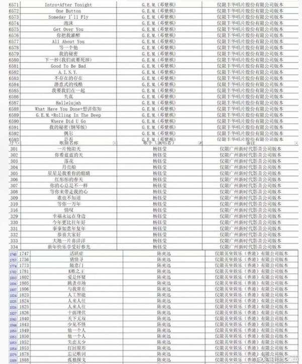 附件中共列出6609部要求下架的音樂電視作品。記者發(fā)現(xiàn),陳奕迅的《十年》《圣誕結》、信樂團的《死了都要愛》等大家耳熟能詳、幾乎是KTV必點曲目,也都在“下架”之列。
