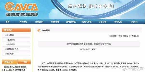 在公告中,音像著作權集體管理協(xié)會表示,為了降低已經(jīng)獲得該協(xié)會許可的各使用者的法律風險,要求卡拉OK終端生產(chǎn)商、向音集協(xié)繳費的卡拉OK經(jīng)營者,在10月31號前,將公告附件中列出的音樂電視作品刪除。從11月1號起,如因為沒有刪除所列音樂電視作品、而遭權利人主張權利,使用者需要自行承擔法律后果。