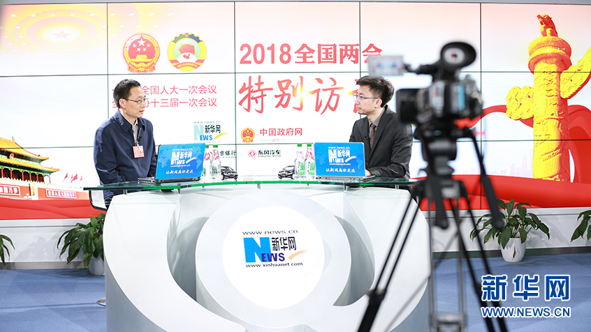 3月6日,全國(guó)人大代表、湖北省荊州市市長(zhǎng)崔永輝(左)做客新華網(wǎng)2018全國(guó)兩會(huì)特別訪談。新華網(wǎng) 楊锘攝