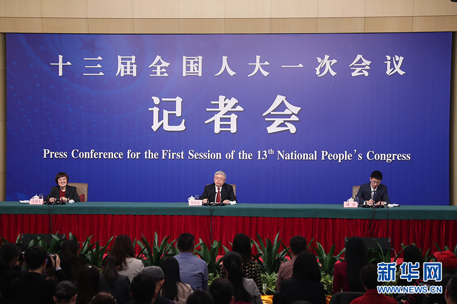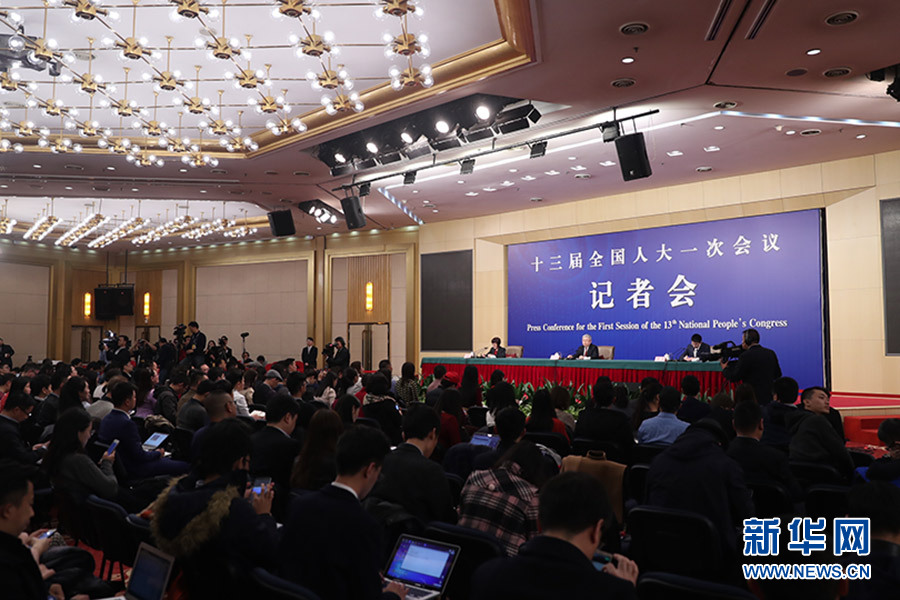 十三屆全國人大一次會議新聞中心于3月7日在梅地亞中心多功能廳舉行記者會,邀請國務院扶貧辦主任劉永富就“打好精準脫貧攻堅戰(zhàn)”的相關問題回答中外記者的提問。圖為記者會現(xiàn)場。新華網/中國政府網 陳杰 攝