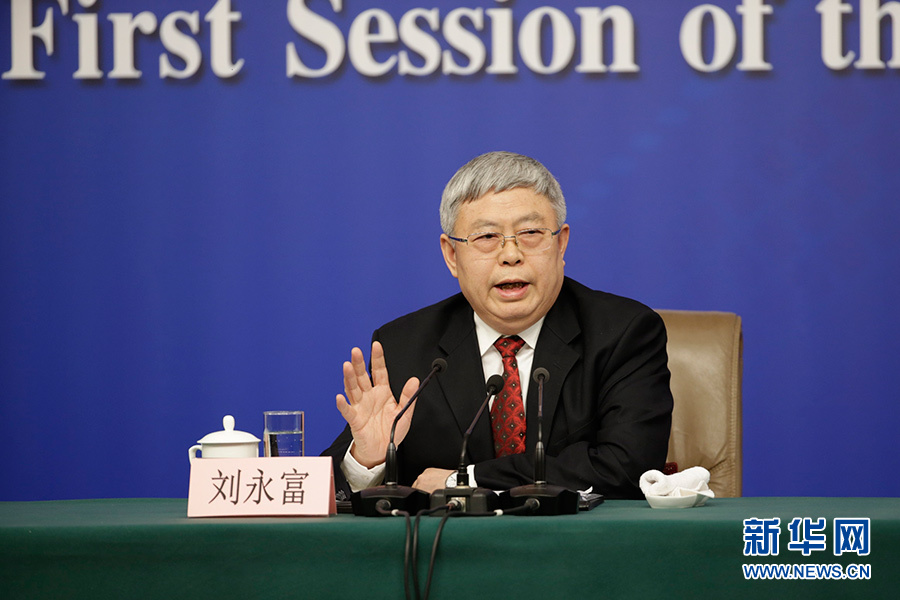 十三屆全國人大一次會議新聞中心于3月7日在梅地亞中心多功能廳舉行記者會,邀請國務(wù)院扶貧辦主任劉永富就“打好精準(zhǔn)脫貧攻堅戰(zhàn)”的相關(guān)問題回答中外記者的提問。圖為劉永富回答記者提問。新華網(wǎng)/中國政府網(wǎng) 陳杰 攝