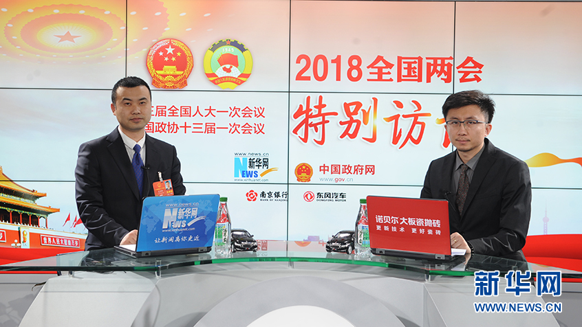 3月9日,全國人大代表、遼寧三溝酒業(yè)有限責(zé)任公司董事長吳京耕(左)做客新華網(wǎng)2018全國兩會(huì)特別訪談。新華網(wǎng)?郭小天攝