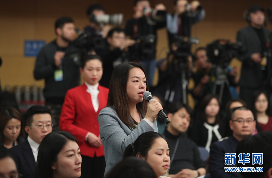 ??? 十三屆全國人大一次會議新聞中心3月10日15時在梅地亞中心多功能廳舉行記者會,邀請國務(wù)院國資委主任肖亞慶,副秘書長、新聞發(fā)言人彭華崗就“國有企業(yè)改革發(fā)展”相關(guān)問題回答中外記者提問。圖為財新周刊記者提問。新華網(wǎng)/中國政府網(wǎng)?曲植 攝?