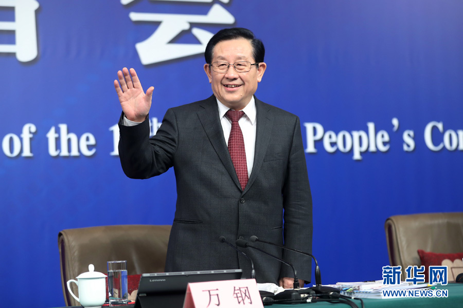 十三屆全國人大一次會議新聞中心于10日上午10時45分在梅地亞中心多功能廳舉行記者會,邀請科技部部長萬鋼、政策法規(guī)與監(jiān)督司司長賀德方、創(chuàng)新發(fā)展司司長許倞就“加快建設(shè)創(chuàng)新型國家”相關(guān)問題回答中外記者提問。圖為萬鋼向記者示意。新華網(wǎng)/中國政府網(wǎng) 翟子赫 攝