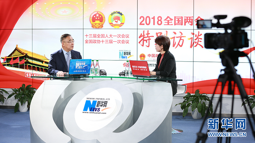 3月12日,全國人大代表,中國中醫(yī)科學(xué)院院長、天津中醫(yī)藥大學(xué)校長張伯禮院士(左)做客新華網(wǎng)2018全國兩會特別訪談。新華網(wǎng) 楊锘攝