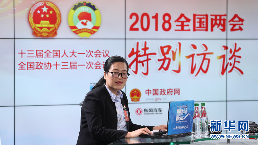 全國(guó)人大代表、中國(guó)工商銀行陜西省銅川市長(zhǎng)虹路支行主任柜員郭曉燕做客新華網(wǎng)2018全國(guó)兩會(huì)特別訪談 新華網(wǎng) 郭小天攝