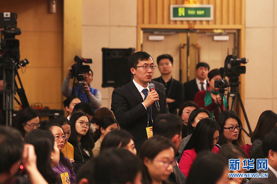 十三屆全國人大一次會議新聞中心3月17日(星期六)15時在梅地亞中心多功能廳舉行記者會,邀請環(huán)保部部長李干杰就“打好污染防治攻堅戰(zhàn)”相關(guān)問題回答中外記者提問。圖為法制日報記者提問。新華網(wǎng)/中國政府網(wǎng) 曲植 攝