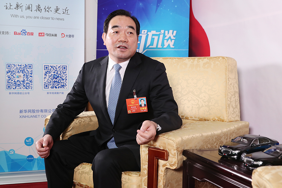 3月20日,全國人大代表、江蘇省徐州市市長周鐵根做客新華網(wǎng)人民大會(huì)堂兩會(huì)特別訪談間。新華網(wǎng) 郝廣鵬 攝