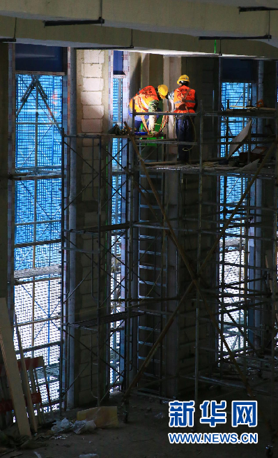 圖片說(shuō)明:龍雪波向記者介紹,離竣工還剩136天,工人們以飽滿的精神努力工作。攝影:新華網(wǎng)錢春弦