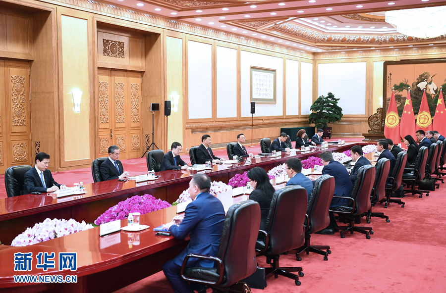 4月28日,國家主席習(xí)近平在北京人民大會(huì)堂會(huì)見吉爾吉斯斯坦總統(tǒng)熱恩別科夫。 新華社記者 謝環(huán)馳 攝