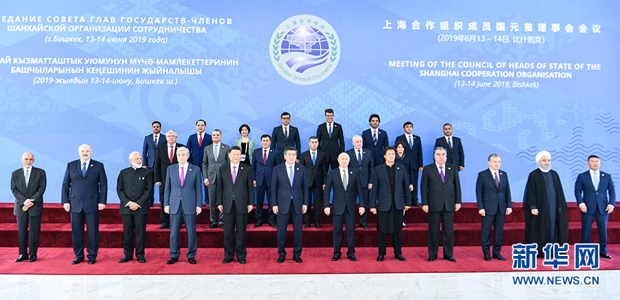6月14日,上海合作組織成員國元首理事會第十九次會議在吉爾吉斯斯坦首都比什凱克舉行。國家主席習(xí)近平同印度總理莫迪、哈薩克斯坦總統(tǒng)托卡耶夫、吉爾吉斯斯坦總統(tǒng)熱恩別科夫、巴基斯坦總理伊姆蘭·汗、俄羅斯總統(tǒng)普京、塔吉克斯坦總統(tǒng)拉赫蒙、烏茲別克斯坦總統(tǒng)米爾濟(jì)約耶夫出席會議。習(xí)近平在會上發(fā)表重要講話。這是大范圍會談后,與會各方集體合影。 新華社記者 高潔 攝