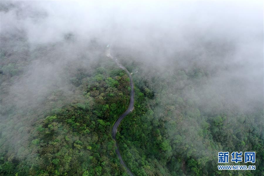 云霧繚繞的老山界(6月30日無人機拍攝)。新華社記者 周華 攝