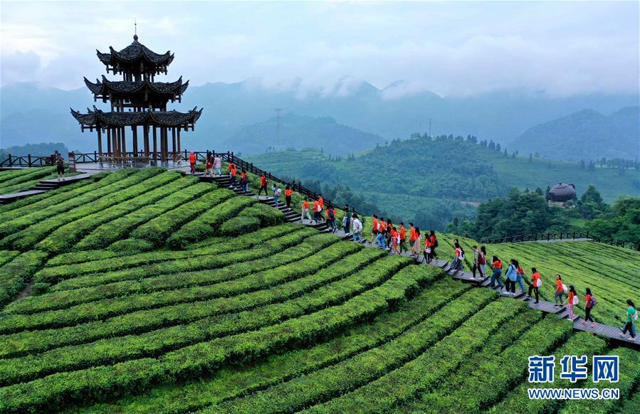 7月7日,游客在湖北省宣恩縣萬寨鄉(xiāng)伍家臺村的有機茶園里觀光游玩(無人機拍攝)。 小暑時節(jié),湖北省恩施土家族苗族自治州宣恩縣以伍家臺村為中心的數(shù)萬畝茶園里游客絡繹不絕。人們到此觀光游玩,體驗傳統(tǒng)茶文化。 新華社發(fā)(宋文 攝)
