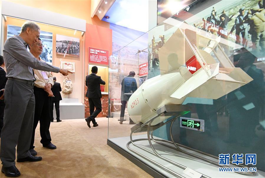 9月28日,海外僑胞在成就展上參觀我國(guó)第一顆原子彈模型。新華社記者 陳曄華 攝