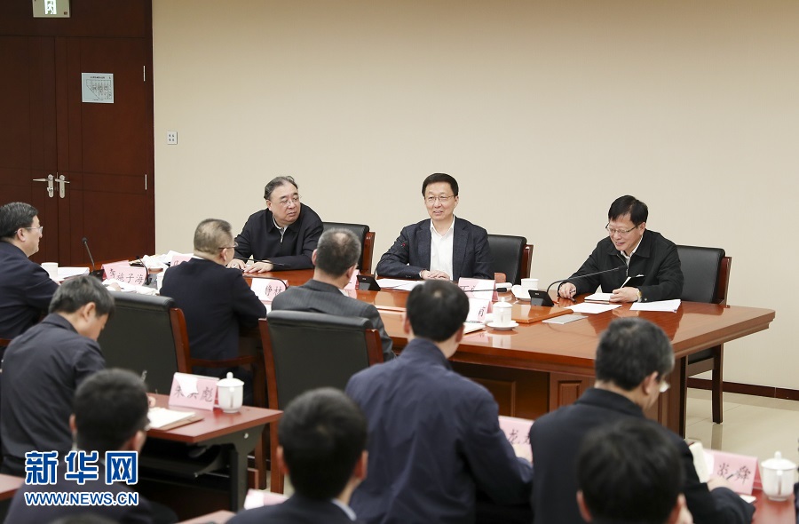 1月9日,中共中央政治局常委、國務(wù)院副總理韓正在國家醫(yī)療保障局召開座談會(huì)?!⌒氯A社記者 丁海濤 攝