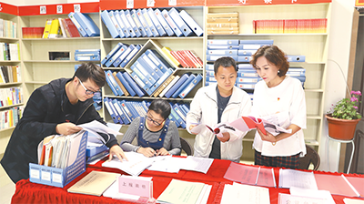 2019年是基層減負(fù)年,新疆庫(kù)車縣實(shí)行“基層一張表”試點(diǎn)改革,圖為干部到健康路社區(qū)匯總檔案報(bào)表。