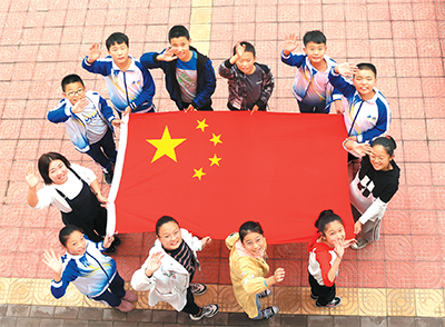 新中國(guó)成立70周年之際,河南武陟縣黨員干部走進(jìn)校園,帶領(lǐng)學(xué)生開展國(guó)旗教育。
